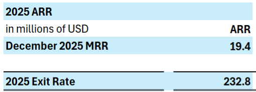 - Explosive Exit Velocity: Exited 2025 with a record $19.4M December MRR, representing a $232M+ Annualized Run Rate (ARR), exceeding original guidance of $100 million.