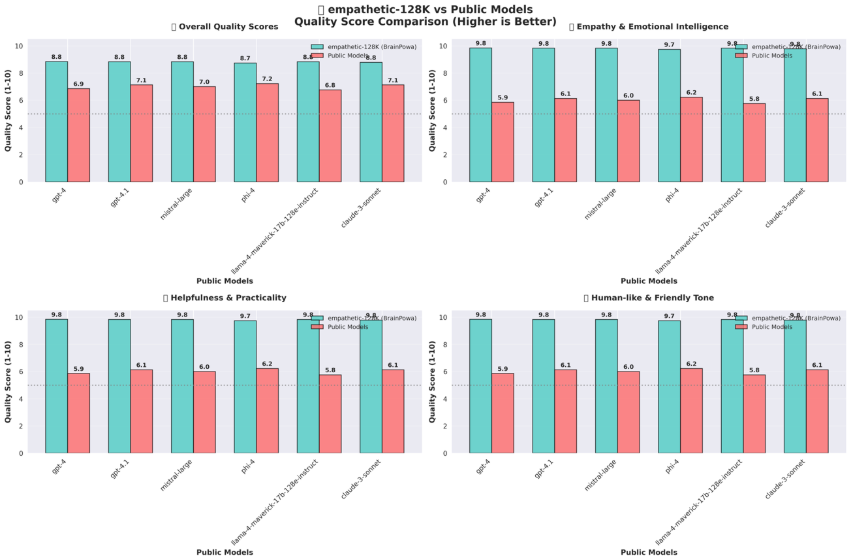 - brainpowa-empathetic-128K: Lightweight, emotionally intelligent; leads in empathetic sales and supportive language for customer retention.