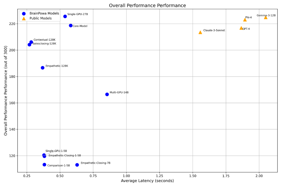 - brainpowa-salesclosing-128K: Sales-focused; shines in transactional efficiency and empathetic sales closing, with promising checkout success.